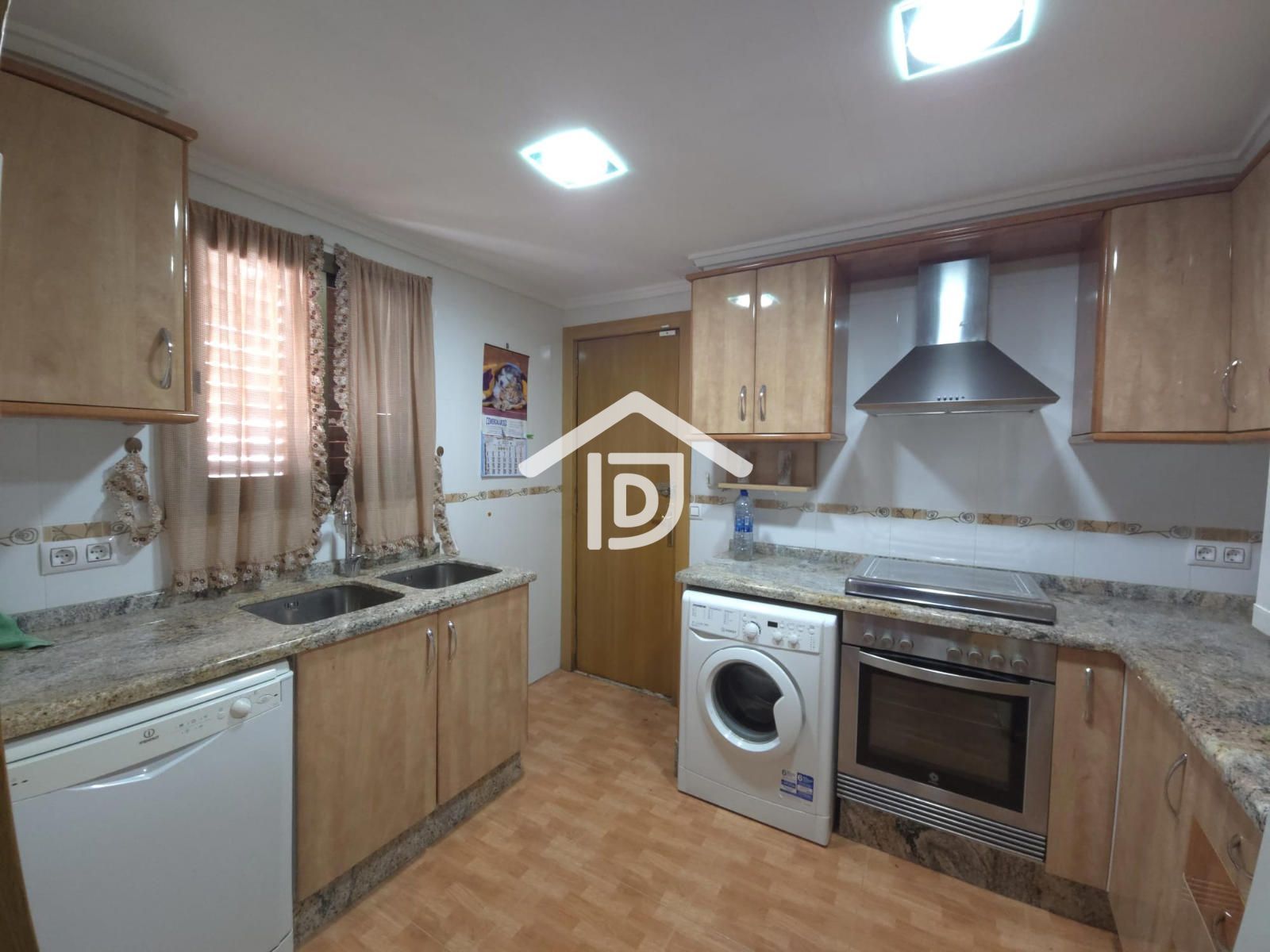 La cocina, práctica y funcional, conecta muy bien con la zona exterior, donde encontramos uno de los grandes atractivos de la casa: un gran jardín privado con piscina, ideal para disfrutar del buen tiempo, y un paellero perfecto para comidas y celebraciones con amigos y familia.